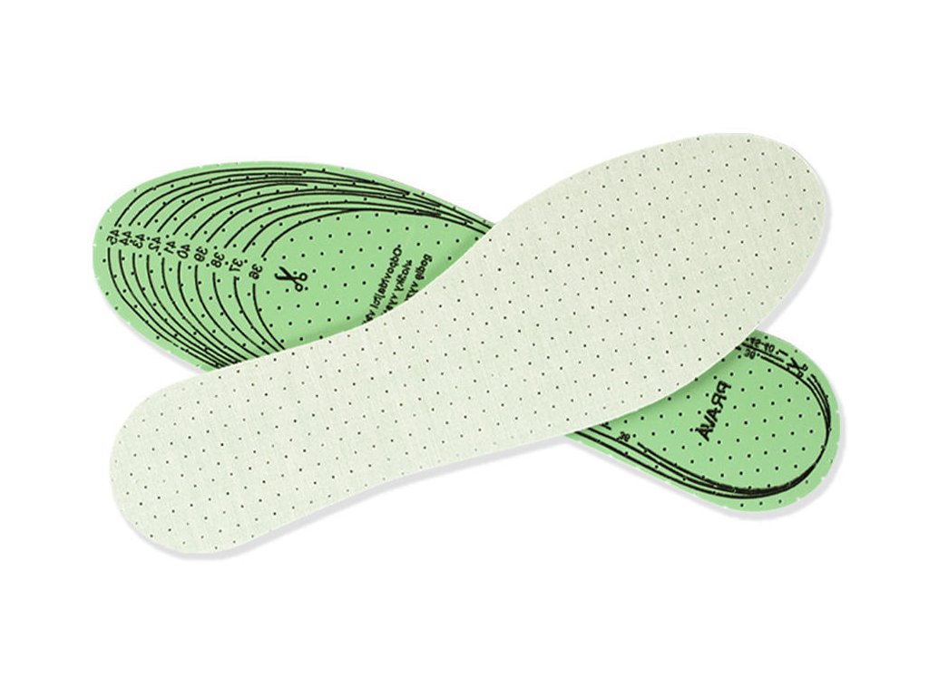Vložky obsahují hygienickou latexovou stélku z latexové pěny. Vrchní strana vložek je z jemné bavlny, povrch stélky je opatřen perforací, která umožňuje lepší cirkulaci vzduchu uvnitř obuvi. Vložky je možné odstříhávat dle délky a šířky obuvi. ZMĚŘTE SI SVOU NOHU SPRÁVNĚ!!